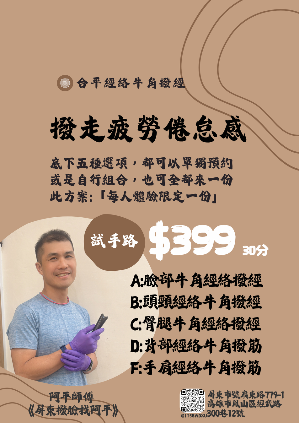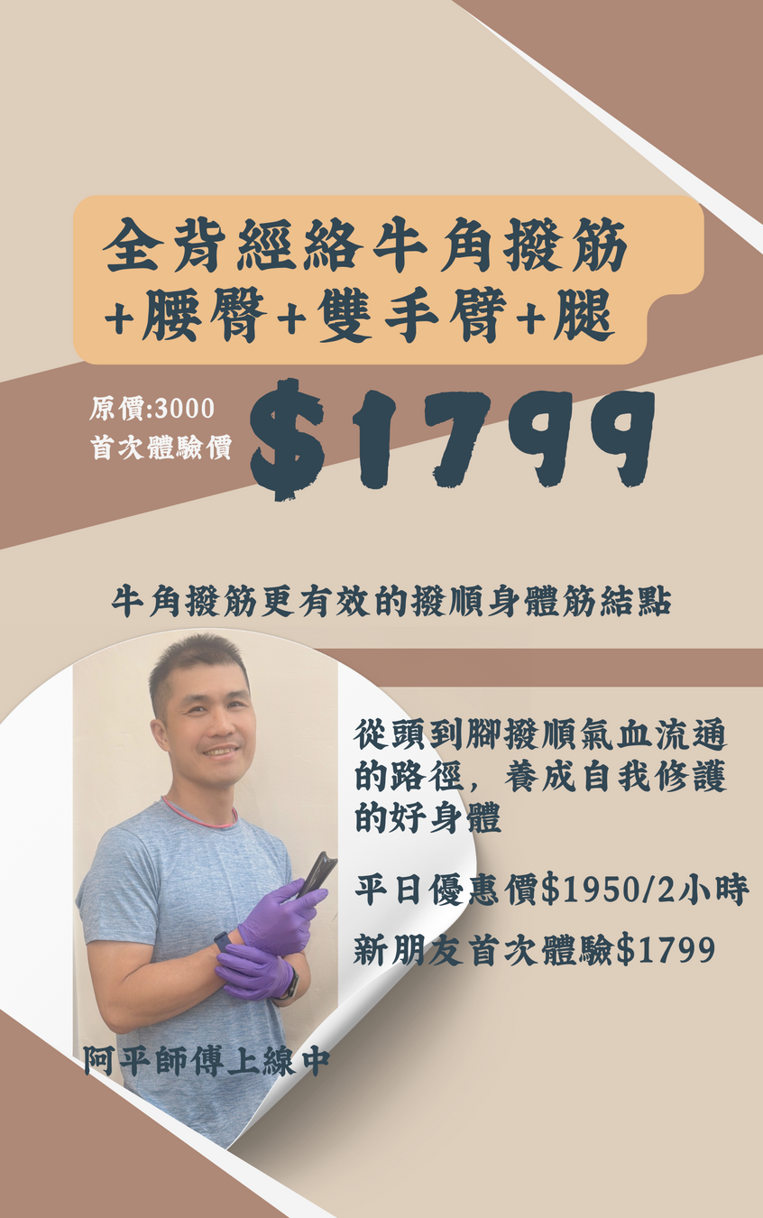 肩頸經絡+小背部經絡撥筋 +大腿刮經$1299/80